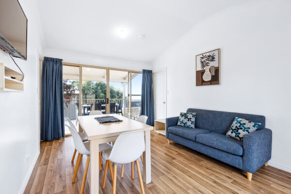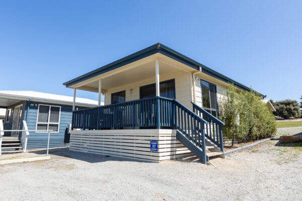 Our Executive Cabin offers a spacious two-bedroom layout, with a queen bed in the first bedroom and a choice of two single beds or a single and bunk beds in the second. Accommodating up to five people, it’s perfect for families. Please call to confirm if you need space for five guests, so we can allocate the right cabin. Complete with ensuite, reverse-cycle AC, TV, cooking facilities, cutlery and crockery, hairdryer, iron, and ironing board. All linen, blankets, and towels are provided, with some cabins offering beautiful water views.